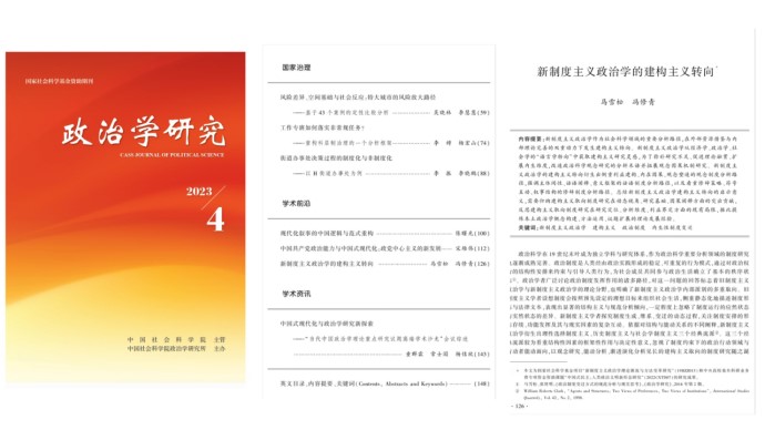 近日,我院马雪松教授团队在《政治学研究》2023年第4期发表题为《新制度主义政治学的建构主义转向》的文章。文章揭示了新制度主义政治学建构主义转向的社会科学背景、内在原因与推动力量,考察建构主义取向的新制度主义政治学的主要研究路径,阐述了新制度主义政治学建构主义转向的贡献、局限及其对本土政治学的启示。文章以制度研究的能动性维度这一创新视角为切入点,系统阐释了新制度主义政治学建构主义转向的学理脉络与内在逻辑。
