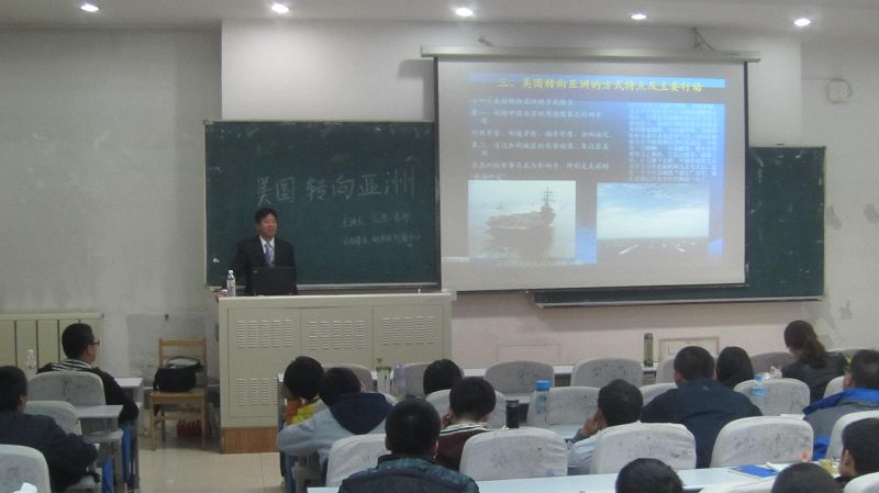 研究生创新中心”邀请,在教学楼十六阶为我校“研究生人文及科学素养提升计划”做了题为“朝鲜半岛局势变化与我国的战略应对”的人文社科系列讲座报告。讲座获得广大同学们的欢迎,帮助研究生同学开阔了知识视野,拓宽了知识广度。继上述两次报告之后,王生教授再次被邀请于2012年10月23日晚在前卫中心校区为我校“研究生人文及科学素养提升计划” 做了一场题为《美国“转向亚洲”及亚太形势新变化背景下我国的战略应对》的人文社科系列讲座报告。受到了广大同学们的好评。