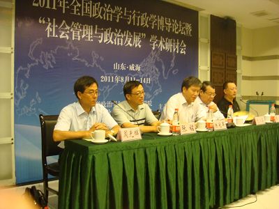 8月12—13日,由山东大学政治学与公共管理学院和山东省政治学研究会联合主办,山东大学威海分校法学院协办第七届全国政治学与行政学博导论坛暨“社会管理与政治发展”学术研讨会在威海举行。与会的专家、教授围绕“博士生培养与学科建设、社会管理与政治发展”两个主题展开了交流和研讨。成人导航 周光辉教授主持了大会开幕式并就“中国政治发展的现实路径选择”作了大会发言。