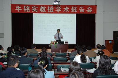 2007年5月17日下午2点,美国德州大学政治学博士、杜克大学政治系教授、杜克大学—中国人民大学联合举办的“政治学研究方法讲习班”发起人和主讲教授牛铭实教授,应邀在前卫南区数学楼二楼报告厅为我院师生做了一场题为“如何培养自治的真精神”的学术报告。