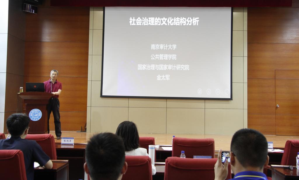 2019525日上午,由成人导航 、成人导航 社会科学处联合举办的第1042场哲学社会科学名家讲座在成人导航 中心校区国际学术大讲堂顺利召开,主讲人为南京审计大学公共管理学院院长、中国政治学会常务理事金太军教授。金教授作了题为社会治理的文化结构分析的报告。主持人为成人导航 副院长许玉镇教授。成人导航 部分教师以及来自各专业的学生共同参与了本次活动。
