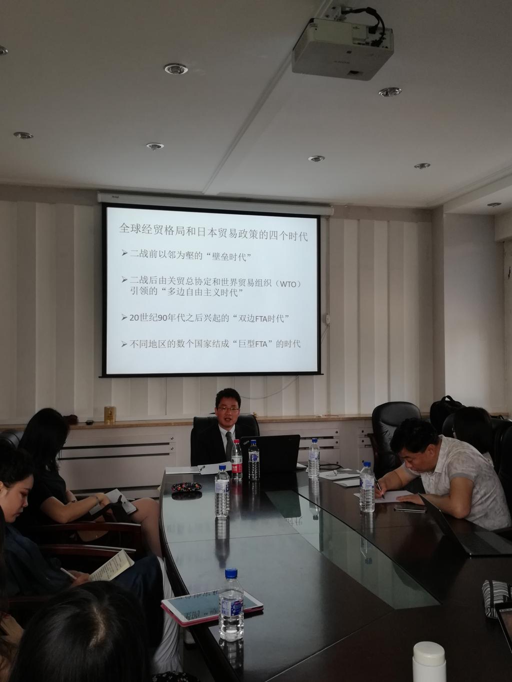 随后,贺平老师从中日韩三边FTA与RCEP阶段性的成果、主要大国间的贸易政策博弈与其外溢效应、日本贸易战略先进与渐进的平衡三个方面指出了今后研究和学习的增长点。