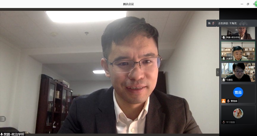 马雪松教授在评议环节中总结了此次讲座的主要内容,表示樊鹏教授作为一位政治学研究者从现实切题、运用本专业的学识及多学科的资源对现实问题的学理思考以及将理论与现实、国内与国外、历史与未来、观点与案例、把脉与开方结合,给青年学者们带来启发。于海洋教授再次感谢樊鹏教授的分享。在问答互动环节,樊老师就对百年未有之大变局的认知倾向、变局下国家重建政治生活的政治原则和使命等问题进行了解答,讲座在热烈的交流探讨中圆满结束。