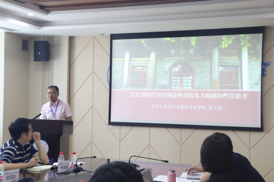 兰州大学政治与国际关系学院陈小鼎教授的发言题目是“后疫情时代中国周边外交软实力构建的些许思考”。