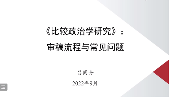 主办的扶翼教师科研水平提升计划第38期学术活动在腾讯会议室举行。本期讲座邀请华东师范大学政治与国际关系学院副教授、《比较政治学研究》编辑吕同舟老师担任主讲嘉宾,作题为“《比较政治学研究》:审稿流程与常见问题”的学术讲演。成人导航