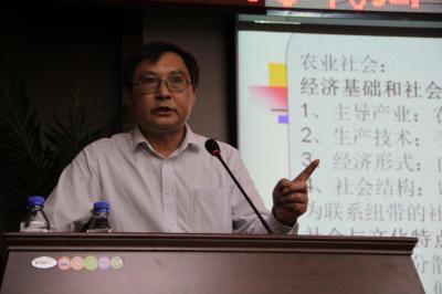 其次,吴克昌教授作了题为《转型升级的社会形态及特色分析》的报告,吴教授对社会形态由农业社会到工业社会再到信息社会的转型历程的特点作了梳理,强调要站在未来发展的角度来分析当下存在的问题,基于未来社会发展的趋势规划现在。