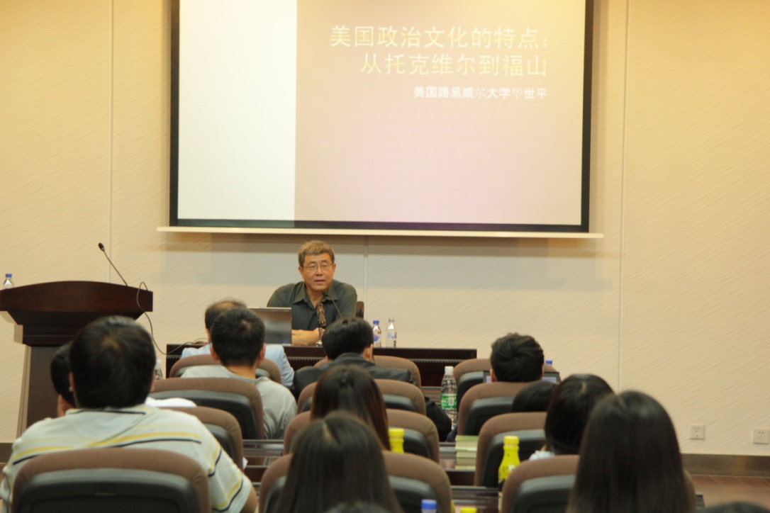华世平教授为我校师生做了一场题为“美国政治文化:从托克维尔到福山”的学术报告。在华教授两个小时的讲座中由托克维尔的《论美国的民主》和福山的《历史之终结与最后一人》两本政治学经典著作展开,结合自身在美国生活研究的经历讨论美国的民主政治这一议题。