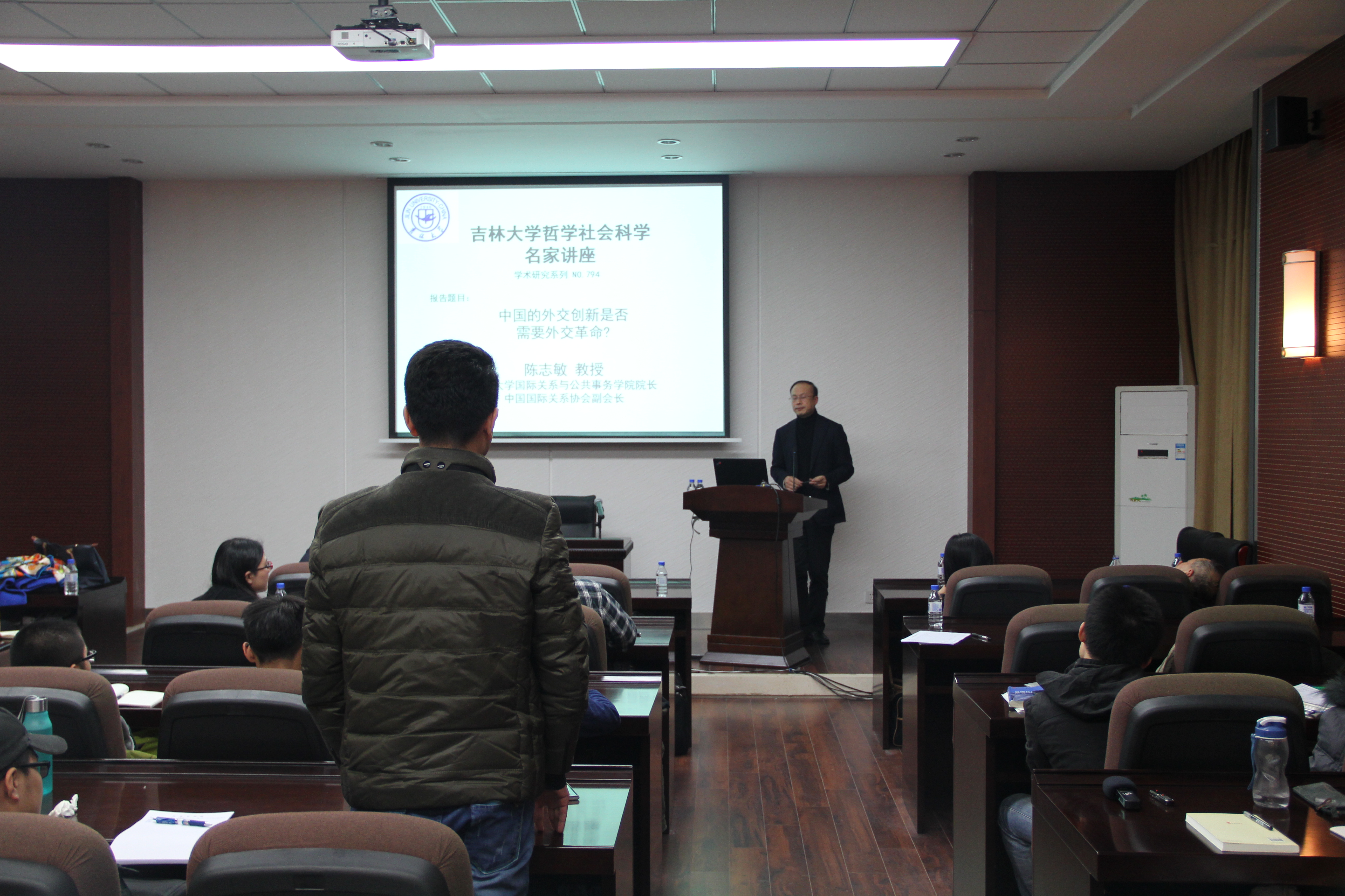 陈教授在一个小时的讲座中,对新中国成立以来三次外交革命进行了回顾和梳理,通过纵向的历史比较,详细论述了当前中国由发展中国家外交向大国外交转型的过程中,在战略、制度、手段和方式等方面所呈现出来的一系列新特征与趋势。在阐明当前中国外交同既有国际规范与机制间存在着“平行补缺”、“嵌套补强”等多维正向关联,并表现出鲜明的“未来引领”趋势后,陈教授指出,上述变化虽然积极而深刻,但并不意味着中国外交从吸引性转变为强制性,由结伴转向结盟,由区别亲疏转向划分敌友,而此其实质是一种改革而非革命。最后,陈教授还对外交革命可能发生的条件及中国外交未来的走向做出了分析与展望。