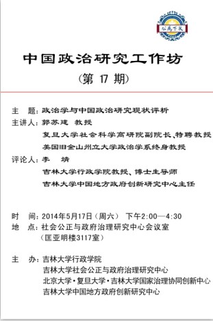 上一篇:我院教师于君博参加“比较政治研究:现状、前沿与趋势”国际研讨会