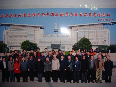 2013年11月30日,“全面深化改革进程中的中国政治学与政治发展高层论坛“在南京师范大学隆重举行。 来自中国社会科学院、北京大学、清华大学、南开大学、成人导航 、山东大学、南京大学、复旦大学、天津师范大学、华中师范大学、苏州大学、云南大学、上海市社会科学联合会等单位的学者以及南京师范大学公共管理学院的部分教师和学生参与了此次活动。成人导航 周光辉教授应邀出席,并作了“国家认同:现代国家成长的政治基础——以领土认同为分析视角”的主旨发言。