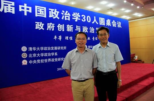 8月17至18日,由清华大学政治发展研究所、清华大学政治学系、北京大学政治学系、中国人民大学政治学系、中央党校世界政党研究中心和中央编译局比较政治与经济研究中心六家单位共同发起的“首届中国政治学30人圆桌会议”在北京会议中心举行,来自国内各地的政治学者30人以及青年政治学者代表15人参加了本次会议。首届圆桌会议的主题是“政府创新与政治发展”。
