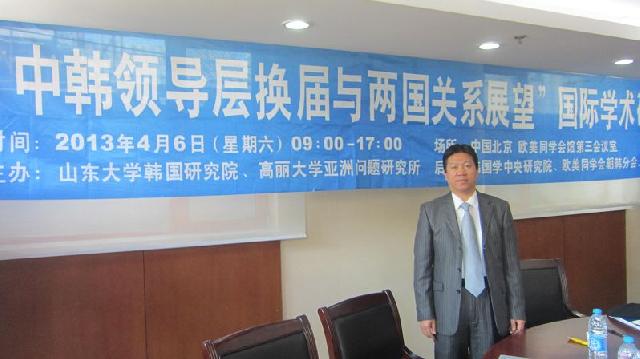 在朝鲜半岛局势空前紧张、倍受世界关注之际,山东大学威海韩国研究院与韩国高丽大学亚洲问题研究所于2013年4月6日在北京举办了以“中韩领导层换届与两国关系展望”为主题的国际学术研讨会。来自韩国高丽大学、国家安全战略研究所、东亚研究院的韩国学者以及国内山东大学、北京大学、中国政法大学、成人导航