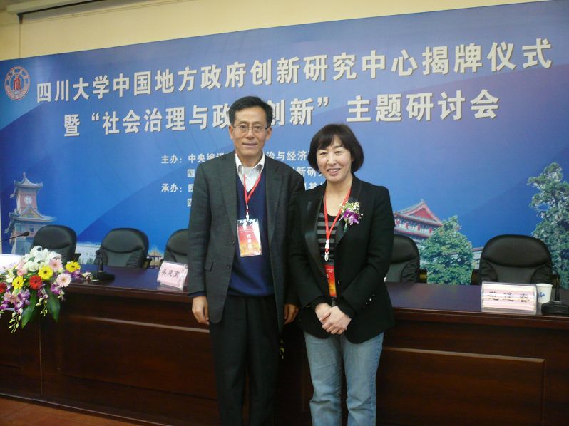 中国地方政府创新研究中心主任李靖教授应邀出席揭牌仪式并作为点评专家参与了“社会治理与政府创新”主题研讨会。周光辉教授对“四川省眉山市构建目标选人的实践与探索”进行了深入剖析并从专业角度进行了点评。李靖教授就 “成都市金堂县人员编制‘总量控制、动态管理’应用与实践”同汇报人和学者们进行了深入交流并做了点评。