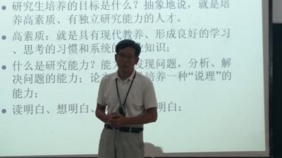 在第三教学楼第四阶梯教室召开全体研究生新生大会,邀请国家级教学名师、成人导航