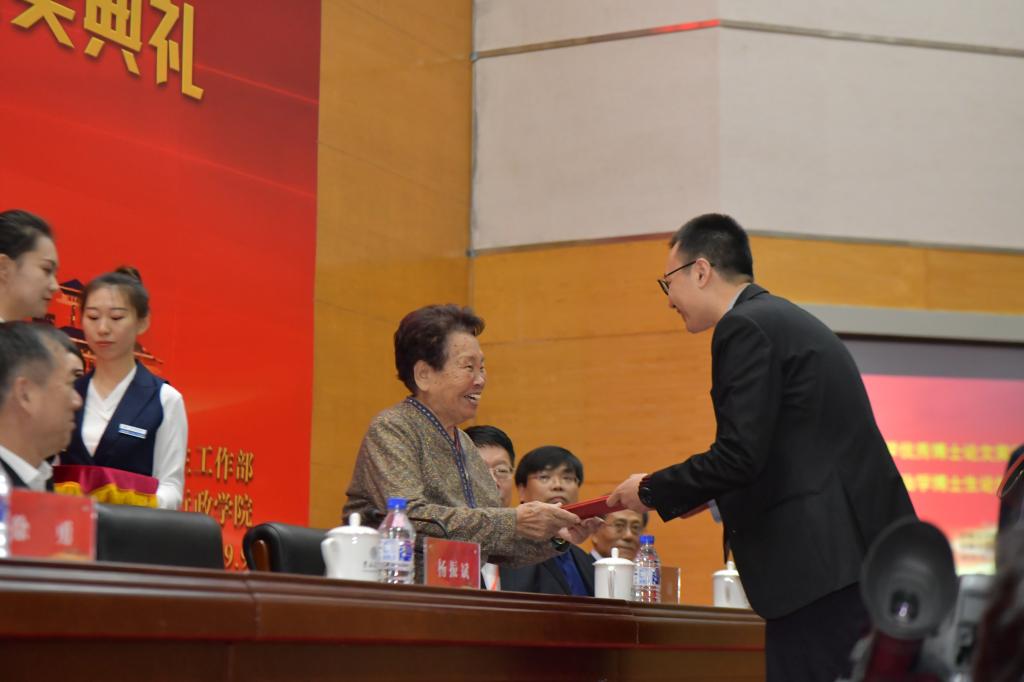 在颁奖环节,王惠岩先生夫人脱弱女士为王惠岩政治学优秀博士论文奖获奖代表安超、游宇、罗宇维等同学颁发荣誉证书,成人导航