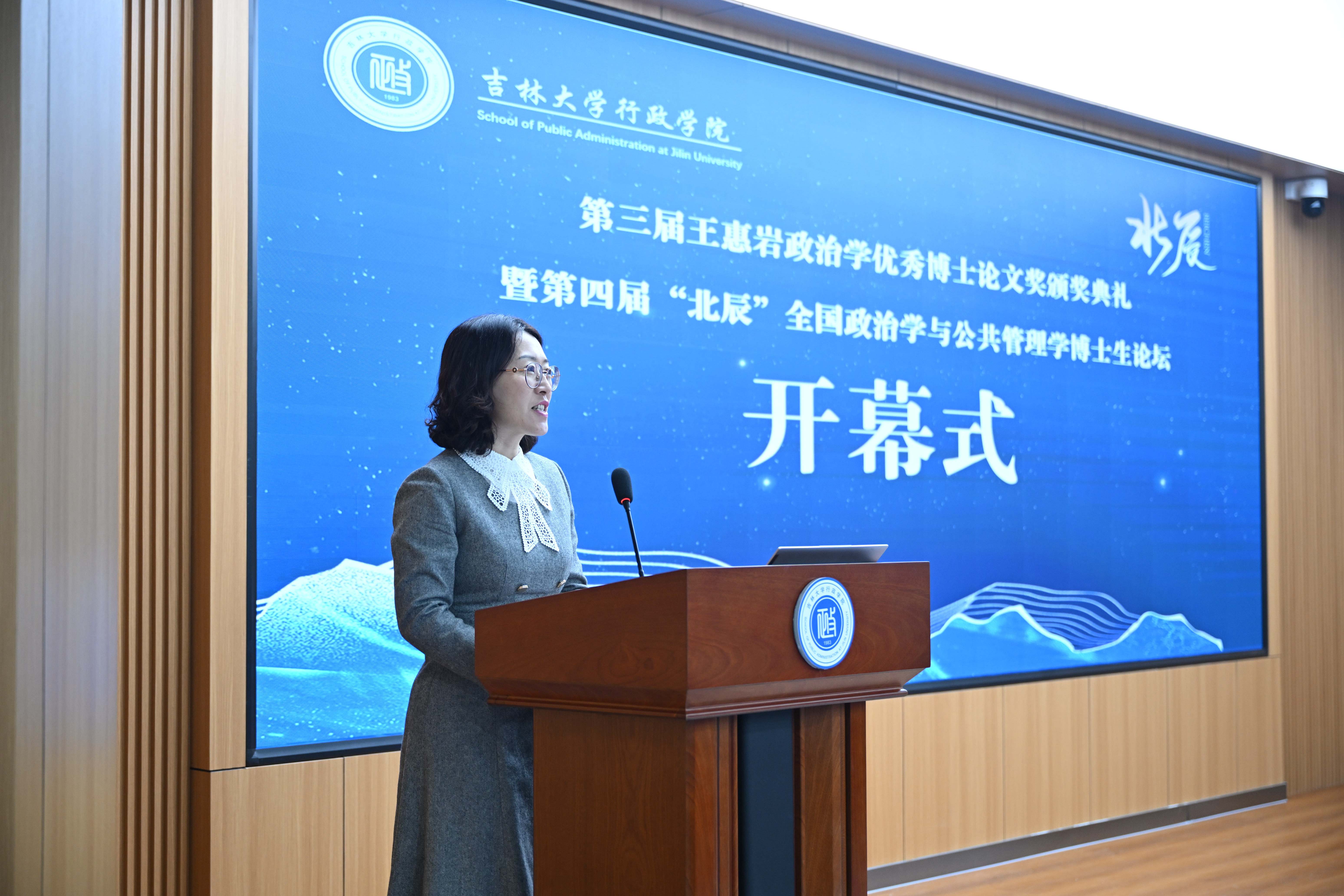 党委副书记史慕华宣读第四届“北辰”全国政治学与公共管理学博士生论坛获奖名单。黑龙江大学陈岩、成人导航
