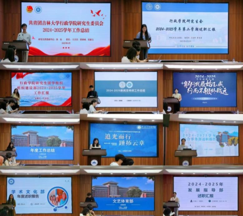 研究生团学组织团委、主席团及各部门负责人依次汇报了本学年的主要工作内容、取得的工作成效、存在的不足之处以及未来团学组织的发展方向。