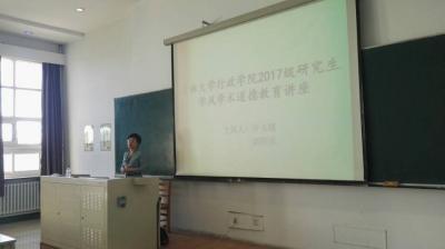 在三教十三阶举办了“研究生新生入学教育”活动之科学道德和学风建设专题讲座,由成人导航