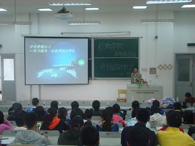 简短的仪式之后,名师班主任周光辉院长为2010级全体新生做了题为《学会管理自己,努力成为优秀大学生》的入学教育专题报告。报告中,周院长从适应变化、了解专业、明确目标、善于学习、全面发展五大方面向2010级新生讲述在大学期间应如何管理自己,成为栋梁之才。周院长谈到,善于管理自己是优秀人才的共同品质,想成为高素质人才就要善于管理自己。进入大学后,在学习环境、学习目的、学习内容、学习方法上都有了很大变化,同学们应善于利用大学的学习环境,自觉调动自身潜力,培养自身专业能力,提升自己的综合素质。其次,周院长强调,我院的四个专业均以政治学为基础,政治学是“经世致用”之学,是“治国安邦”之学,政治学研究的是如何进行合理的制度安排,使良好的公共生活成为可能。在学科建设上,我院是最早恢复政治学专业的三所高校之一,具有很高的学术地位,在科学研究和人才培养上具有相当的优势。同学们享有学院的资源,也感受着成人导航