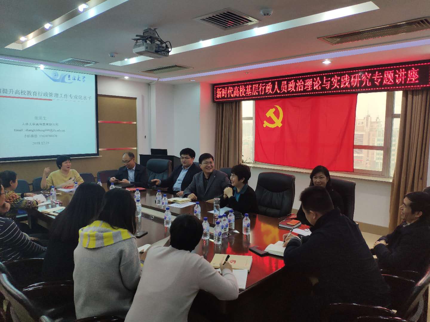 为学习贯彻习近平总书记关于“注重培养专业能力、专业精神,增强干部队伍适应新时代中国特色社会主义发展的能力”的重要论述,切实推进“两学一做”学习教育常态化、制度化,机关教工党支部按照学院党委关于提升行政教辅队伍专业化素质的相关部署,于2018年12月21日举行专题党日活动,邀请成人导航