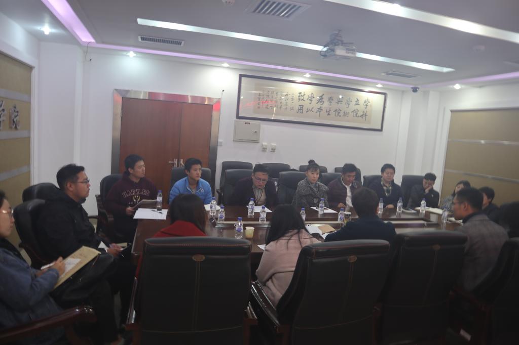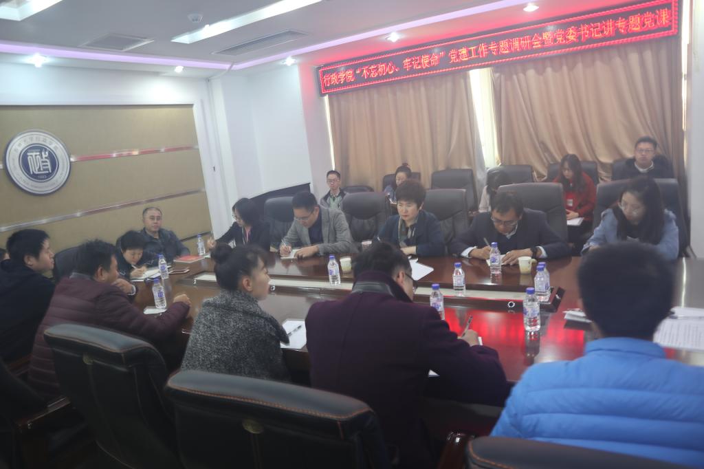 在东荣大厦1214会议室召开“不忘初心、牢记使命”党建工作专题调研会及党委书记讲授专题党课,学校第五指导组组长刘雪峰、联络员姜姗姗以及学院师生党支部书记和支部委员参加了会议。会议由党委书记魏鹤影主持。
