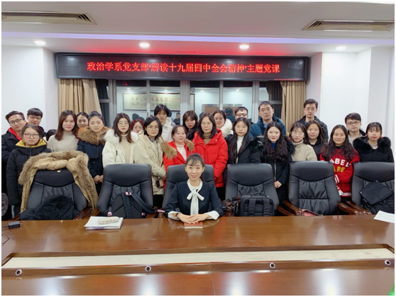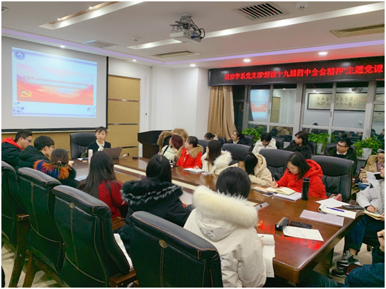 为深入贯彻学习党的十九届四中全会精神,12月17日晚,政治学系党支部于东荣大厦1214会议室举行了“解读十九届四中全会精神主题党课”系列学习活动,由成人导航