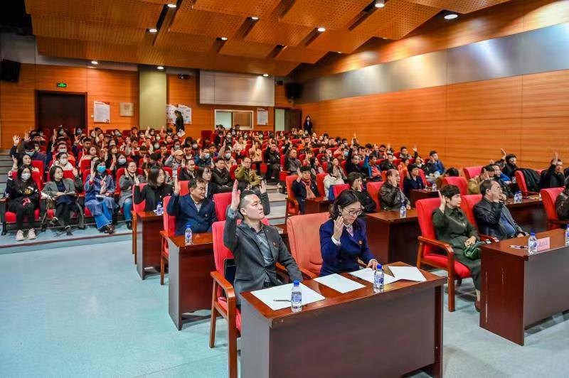 在中心校区国际学术大讲堂召开党员大会,选举参加中国共产党成人导航