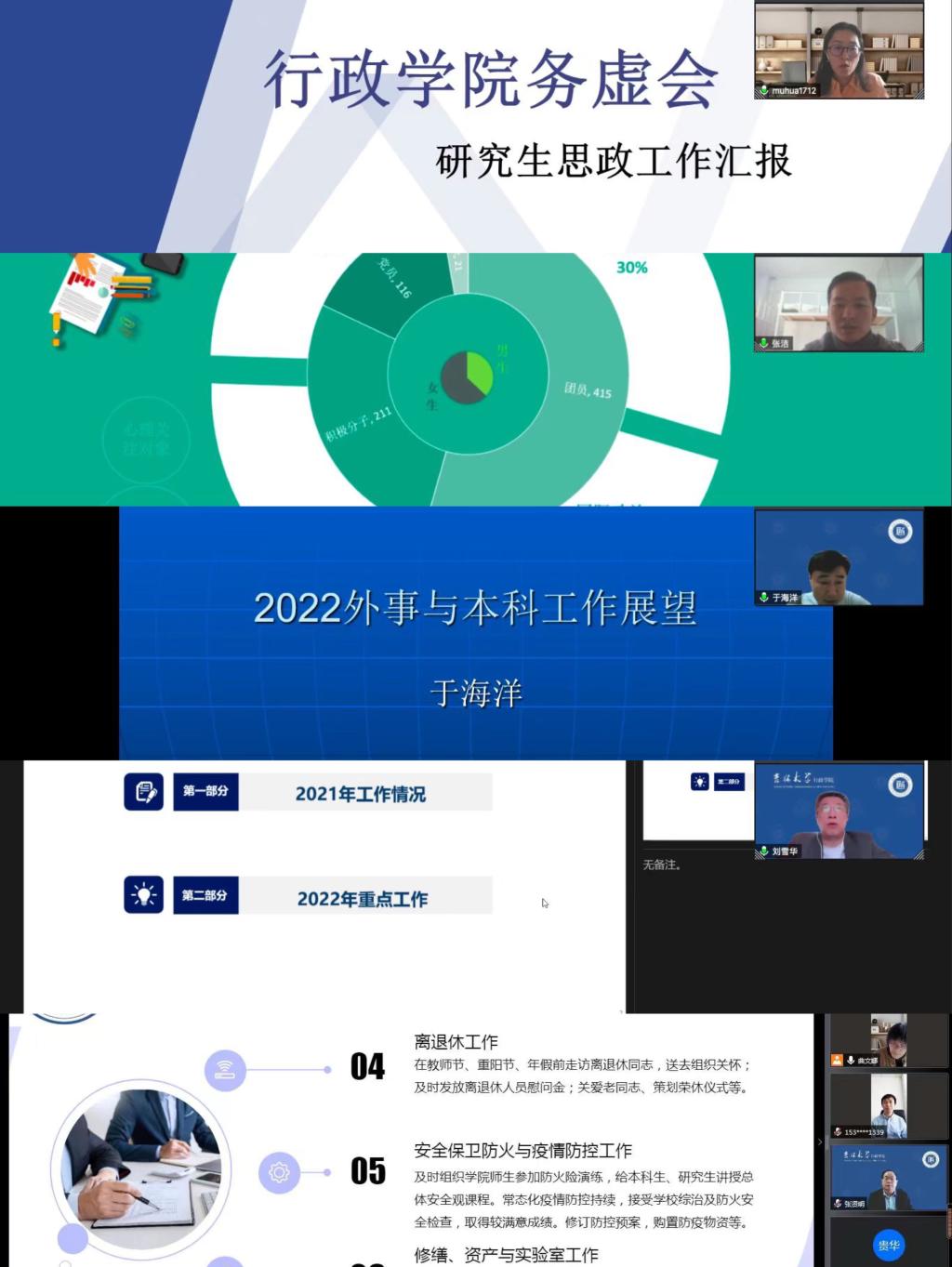本次会议主题是贯彻落实学校第十五次党代会精神,全力推动“十四五”攻坚之年学院事业快速发展。领导班子成员围绕会议主题,立足分管领域和本职工作,依次对上一年度工作进行全面梳理总结,对照校院两级工作要求指出问题剖析原因,并对本年度工作计划和工作思路进行解读说明。在交流研讨环节,学院学术委员会主任委员周光辉教授指出,学院在“十四五”规划开局之年,要紧紧围绕国家战略和社会需求,对标成人导航