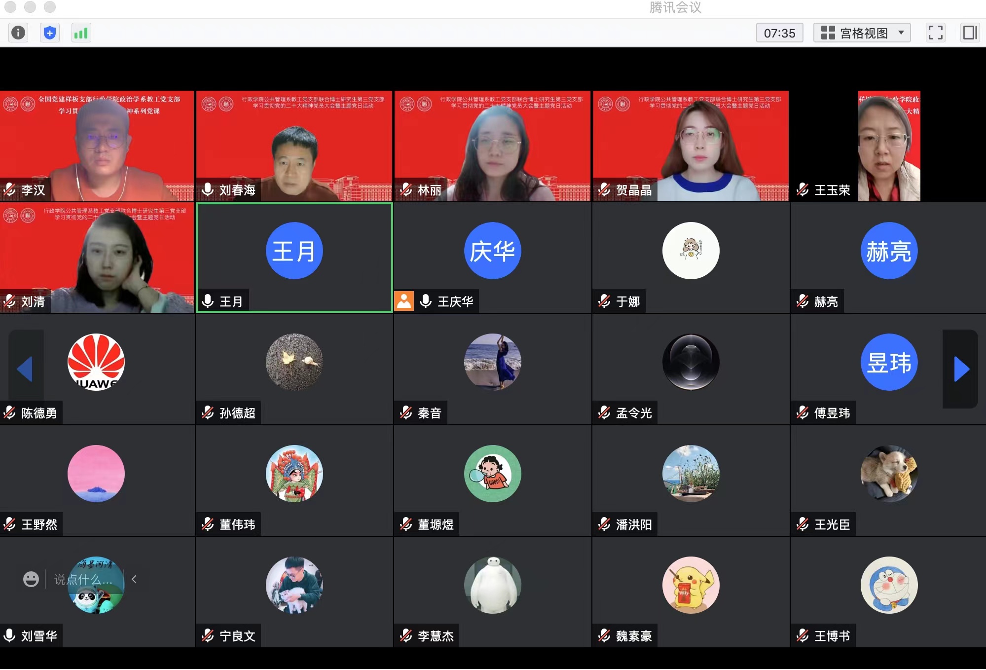 博士研究生纷纷表示受益良多,拓展了大家的研究视野,也与老师们进行有效互动,结合自己的研究领域,从不同的学科视角阐述自己的学习感悟。王庆华书记最后作出总结,表示教师支部和博士研究生支部的联建共学意义深远,教师和学生都结合自身科研工作对二十大精神有了更加深入的思考,希望能够通过学术共同体实现资源共享和共同进步!