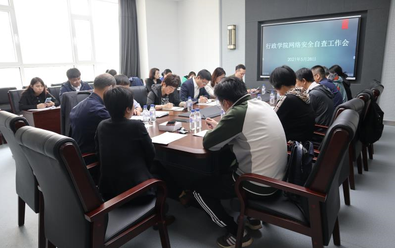 在东荣大厦B304会议室召开网络安全自查工作会议,学院网络工作小组成员、全体管理教辅人员、电子政务系教师代表、各研究机构媒体负责人参加会议。会议由党委副书记张洁主持。