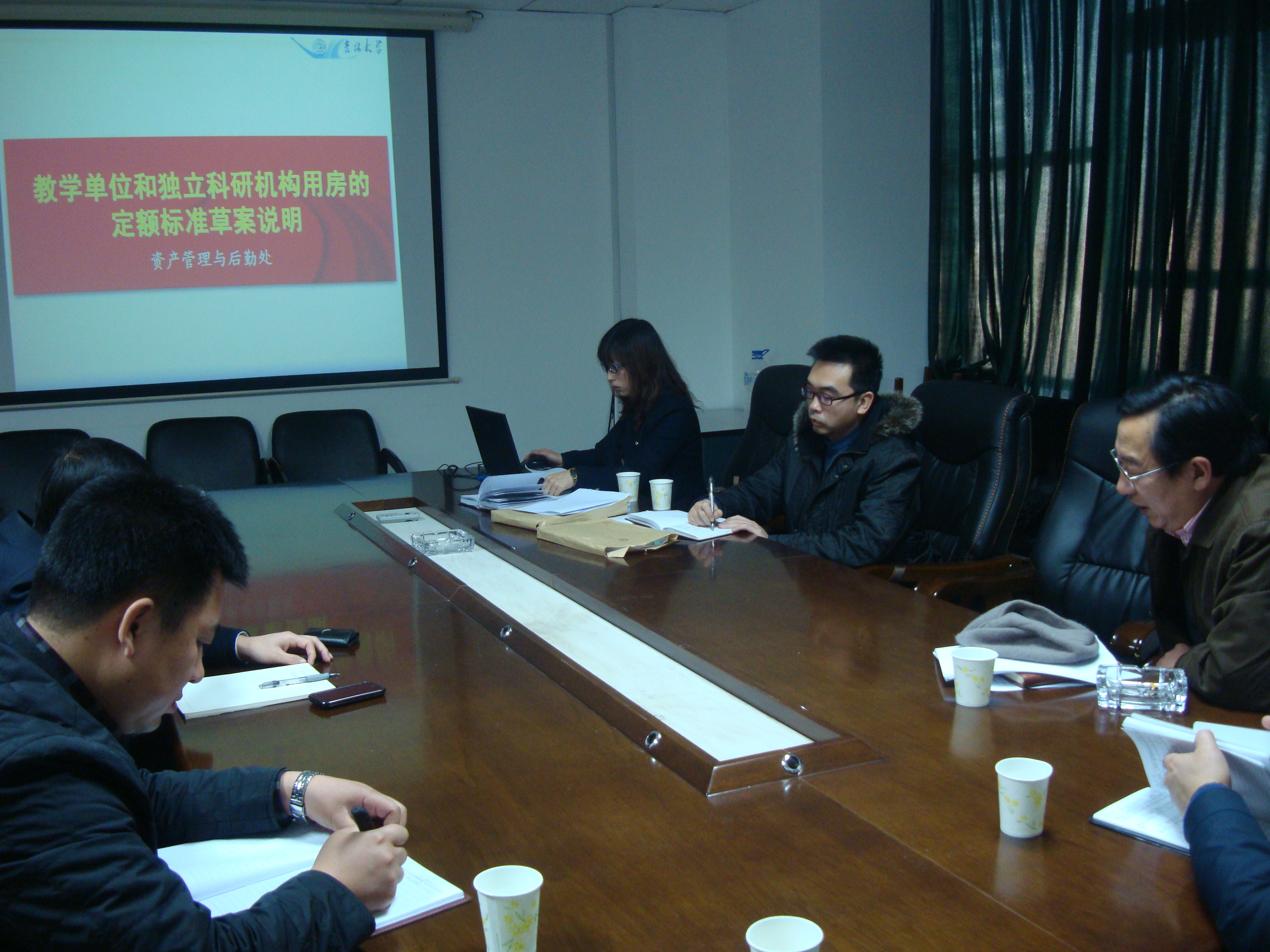 11月12日上午,资产管理与后勤处李宏伟常务副处长等一行四人,来到成人导航 进行“教学单位和独立科研机构用房定额标准核定”的调研。成人导航 张贤明院长、边铁书记、范斌副院长参会。