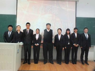 行政论坛辩论赛初赛在中心校区第三教学楼第十三阶梯教室成功举办。本科生辅导员刘洋、曲畅竹,辩论队前领队王小勃、张力伟、贾茹应邀出席本次比赛并担任评委。参加本次活动的还有学院的主要学生干部、本届行政论坛教练组成员以及2014级全体本科生。主持人由学生会秘书部副部王雨萍(2013级)担任。