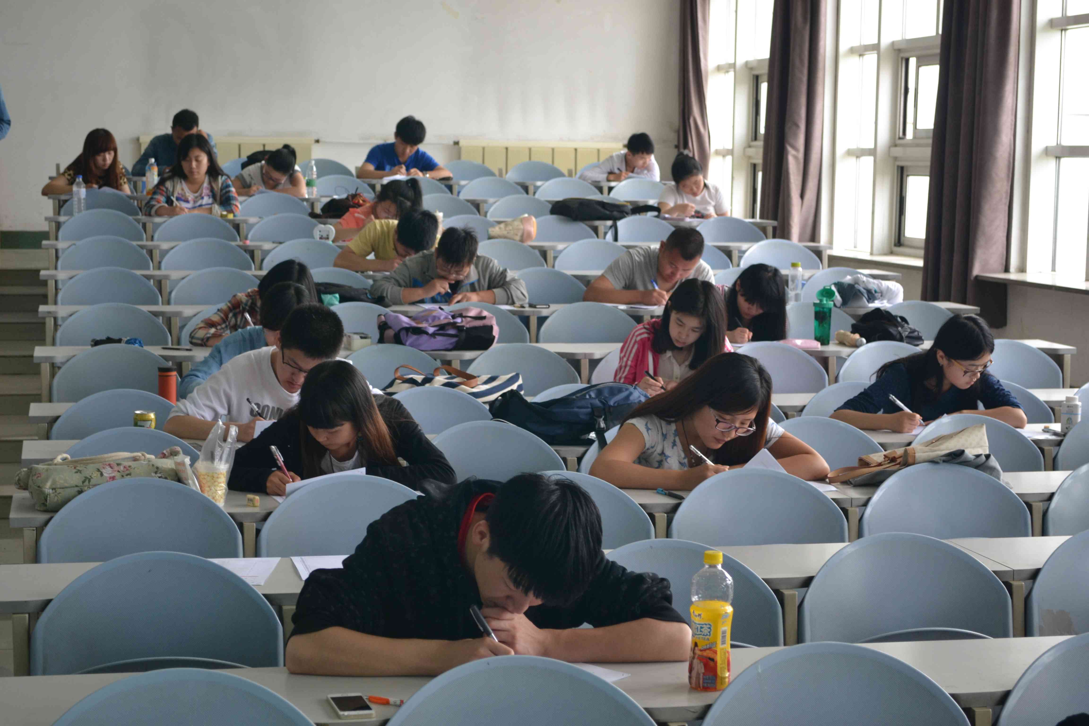 学生会学术部精心准备。分发试卷时,朱峰向同学们说明了考试的流程和考场的规则,重点介绍了一些考场上应注意的细节问题,如发下试卷后到开考指示下达前不能作答,否则按违纪处理和考生各张答题卡收回的具体时间。答题开始后,各位考生认真作答,时而凝神沉思,时而奋笔疾书,并没有因为这是一场模拟考试就对它产生丝毫懈怠,而是把它当作一次真正的四级考试来认真对待。听力考试结束后,主监考员和巡视员收回第一张答题卡,进行批改。11点25分,考试结束,大家上交第二份答题卡。此时,大家也拿到了第一张答题卡自己的成绩。在每位同学离开教室时,此次模拟题的答案也发放到他们手中,方便同学们在考试后核对查看。