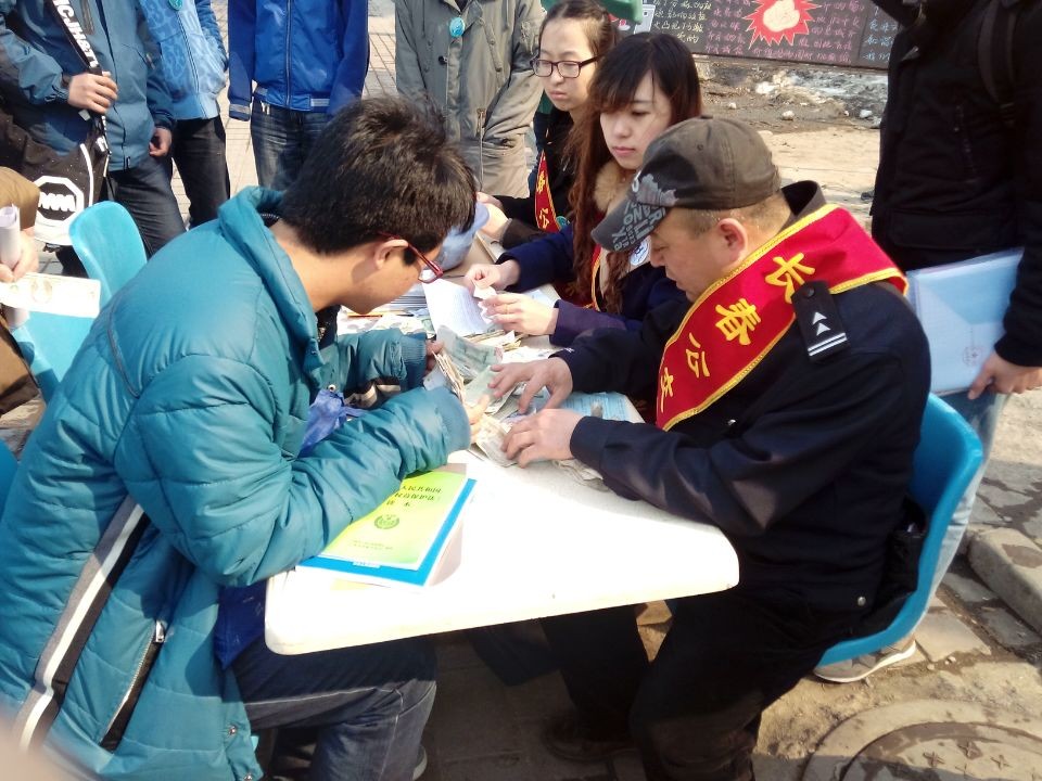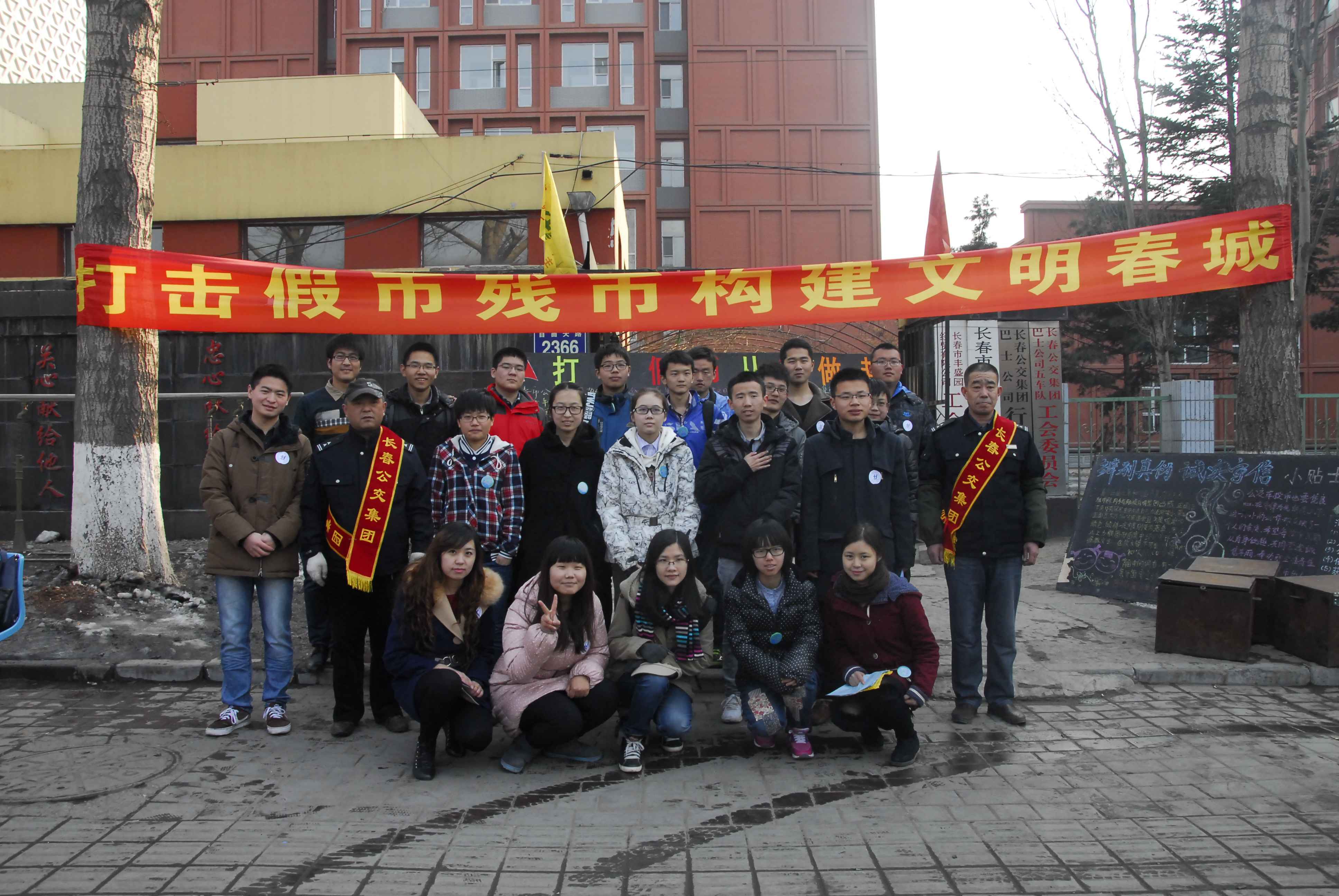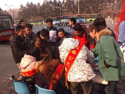 081202班和081302班的同学来到了吉林省长春市公交巴士第五车队,在两班班长的带领下,同车队工作人员一起组织了一场以“打击假币残币,构建文明春城”为主题的3•15打假宣传活动。