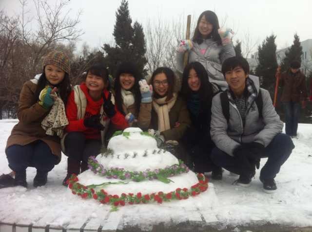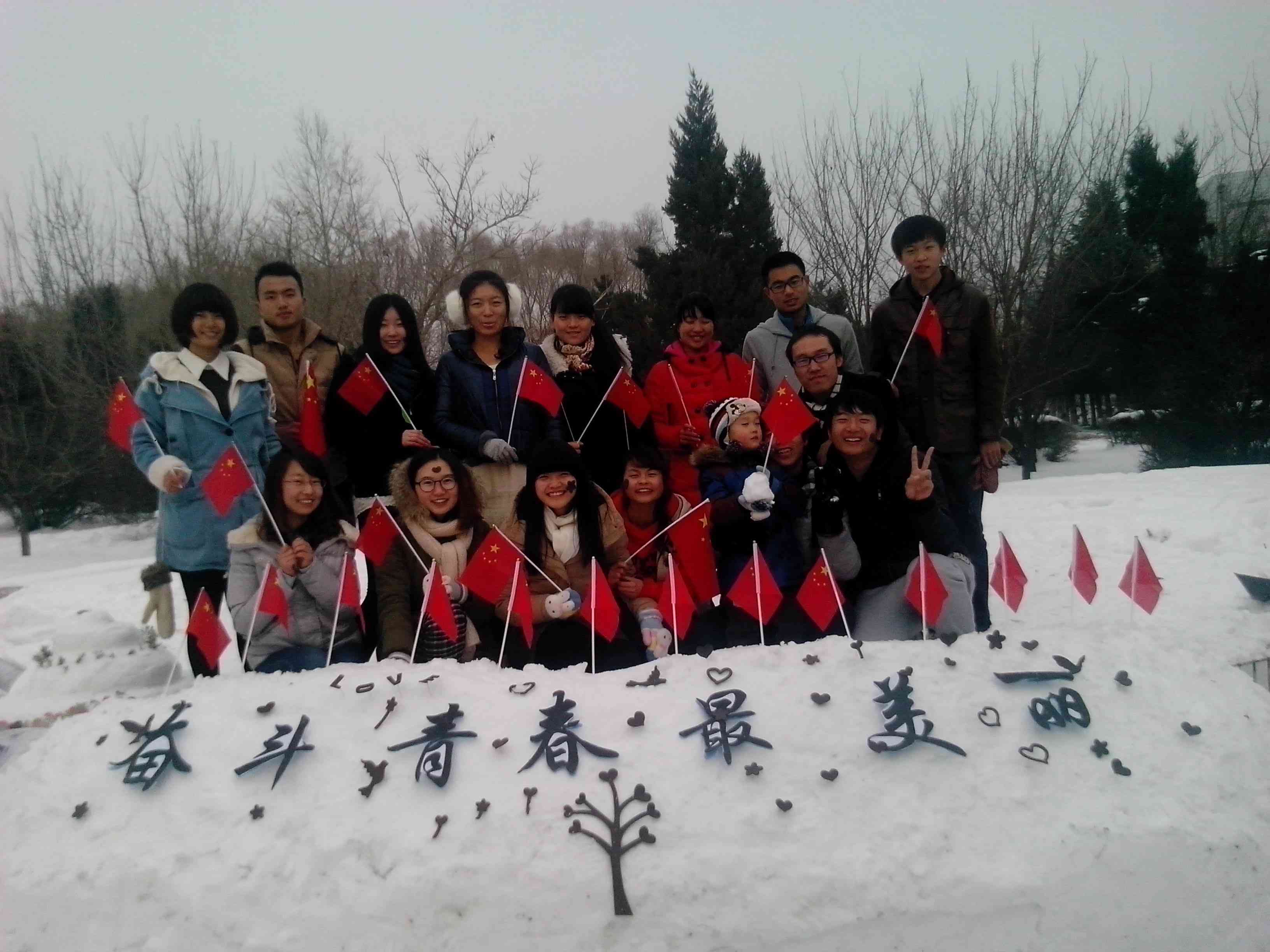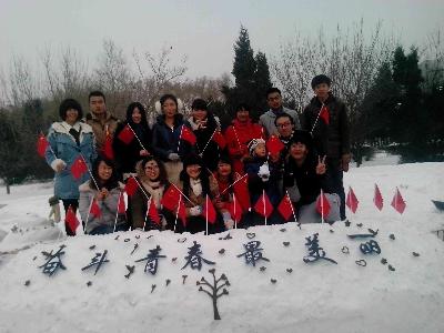 081201班团支部积极响应院团委的组织与号召,联合举办了“我的中国梦——奋斗的青春最美丽”团日系列活动之“疯狂英语雪地创意大赛”。