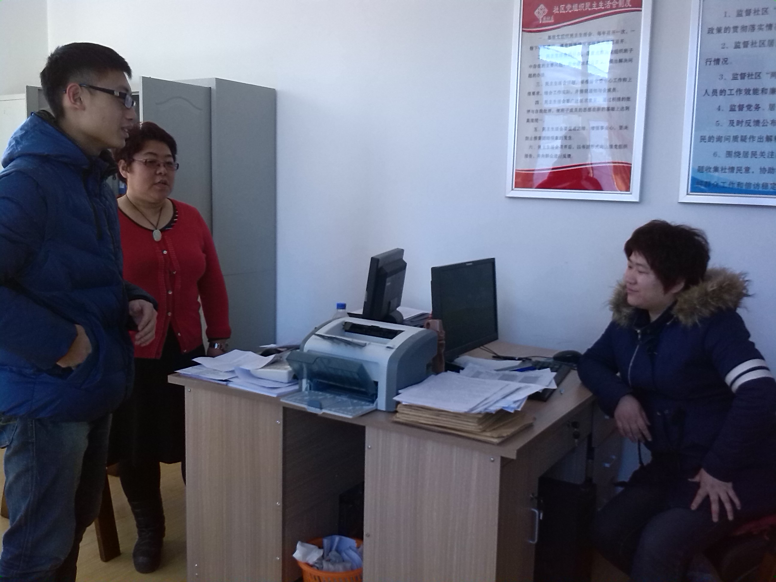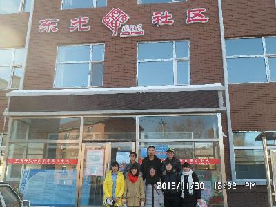 081203班与081303班的同学于11月30日9时许一同来到长春市朝阳区前进街道东光社区进行了志愿服务,协助社区工作人员对社区内的商户信息进行了收集统计。