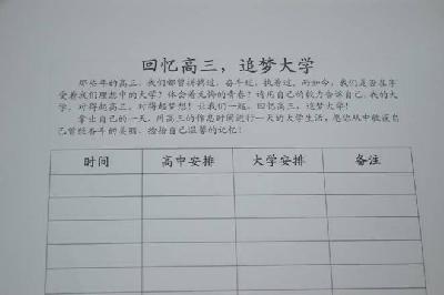 活动以作息时间表为载体,要求同学们用高三的作息时间安排一天的大学生活。12月5日,班委为同学们分发了作息时间表,并鼓励大家做好计划,用自己的毅力坚持一天紧张而充实的大学生活。12月6日晚,班委同学对同学们的计划完成情况进行了调查,并收集了部分同学的计划安排表。在调查过程中,一位同学说:“前些天,我越来越觉得我的大学生活对不起高三,这次活动我很认真的做了,一天过得比较充实。而且不断回想着自己高三的日子,想起了以前的老师和同学们,很怀旧,很幸福。”