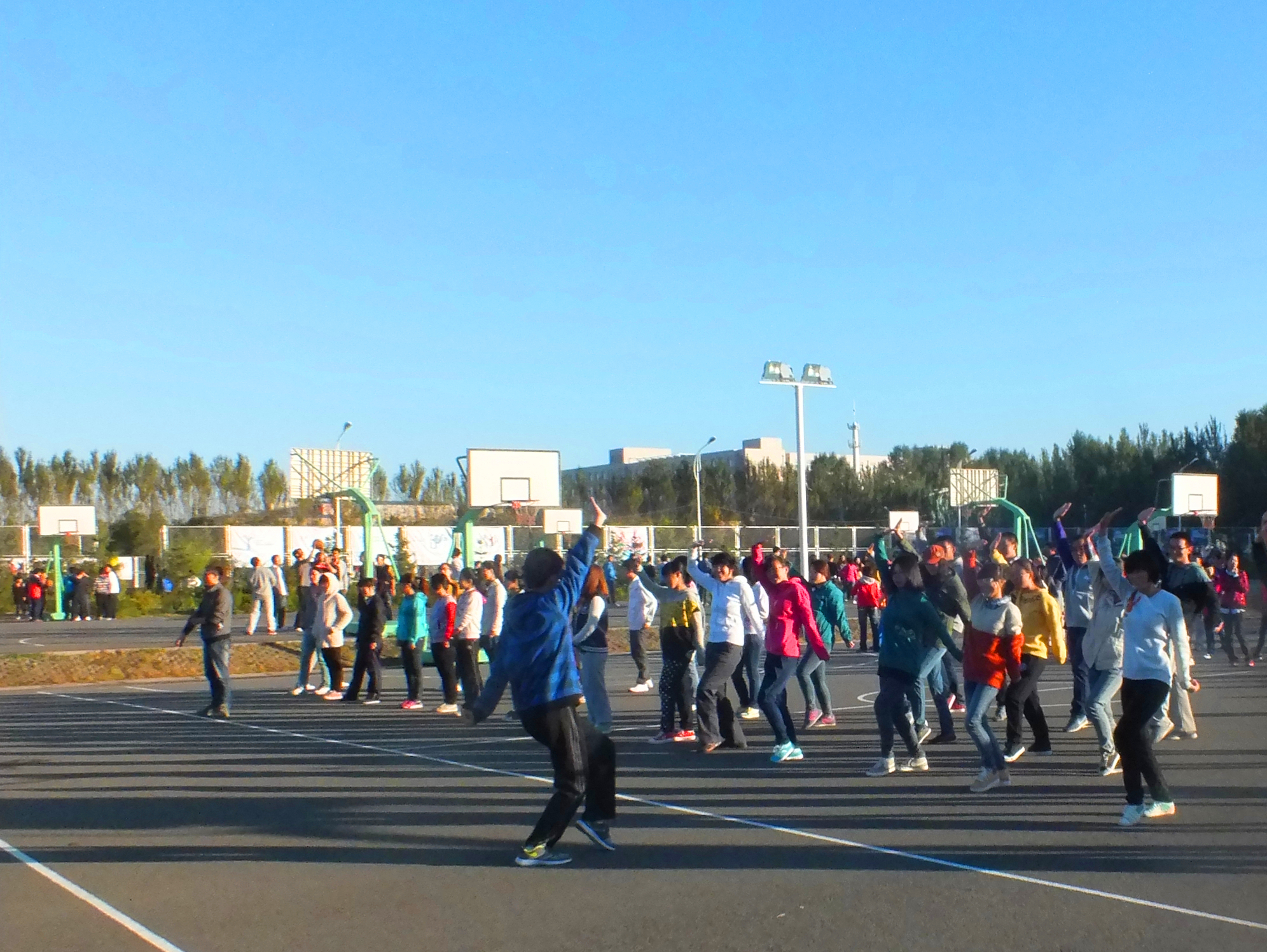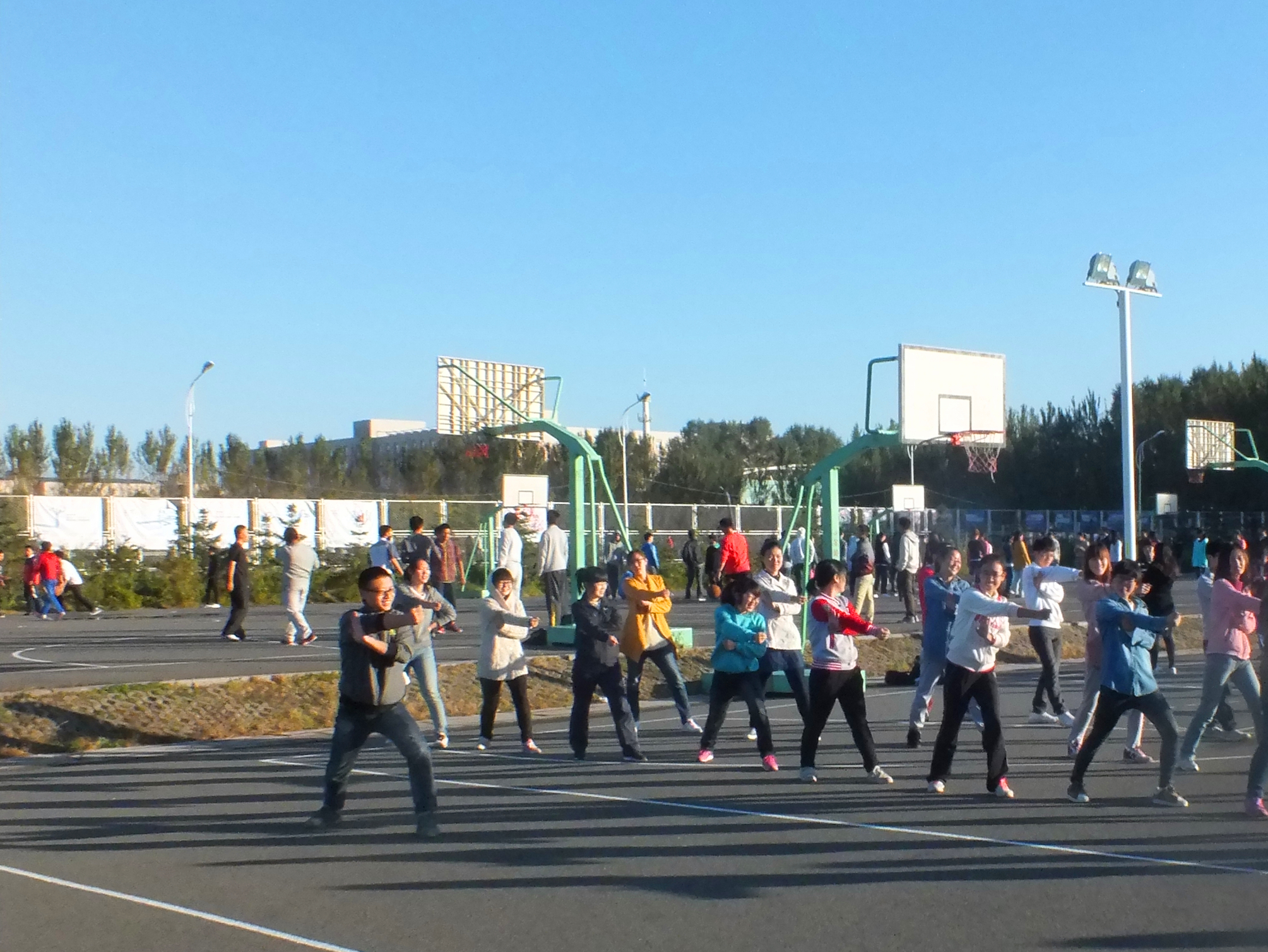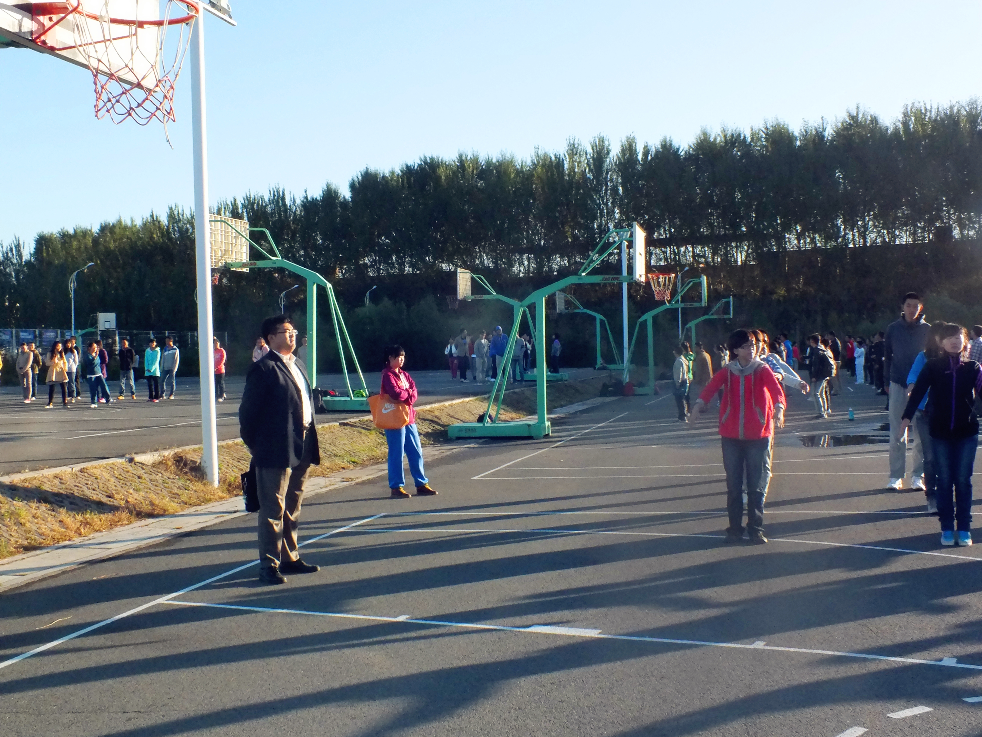 2013-2014学年第一学期首次集体早操健身活动在中心校区田径场和篮球场拉开序幕。本次活动的开展旨在贯彻落实《吉林省教育厅关于加强学校体育工作实施意见的通知》和《成人导航