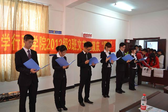 活动伊始,东光社区书记曹伟作了简短讲话,曹书记高度赞扬了行政学子积极走进社区参加志愿服务的行为,并预祝活动圆满成功。随后,联欢活动正式拉开序幕。社区老年艺术团和居民群众先后表演了京剧选段、红歌大合唱等节目,他们用嘹亮悦耳的歌声表达了他们幸福喜悦的心情。在欣赏过社区居民的表演后,三班同学也纷纷带着精心准备的节目登台表演,为祖国生日献礼。一首《祖国颂》的诗歌朗诵抒发了当代大学生对祖国深深的热爱之情;王森岩同学演唱的《十年》美妙动听,赢得阵阵掌声;最后,文艺表演以三班女生表演的《青花瓷》集体舞蹈作为结束。一个个精心准备的节目充分展现了多才多艺的行政学子昂扬进取、积极向上的精神面貌。在精彩的文艺表演之后,同学们还积极主动地和前来观看节目的老人积极交流,倾听老人们的故事,并把部分空巢老人所面对的实际困难和居民对社区共工作的意见反映给社区工作人员,以此来帮助老人们解决生活中的问题。