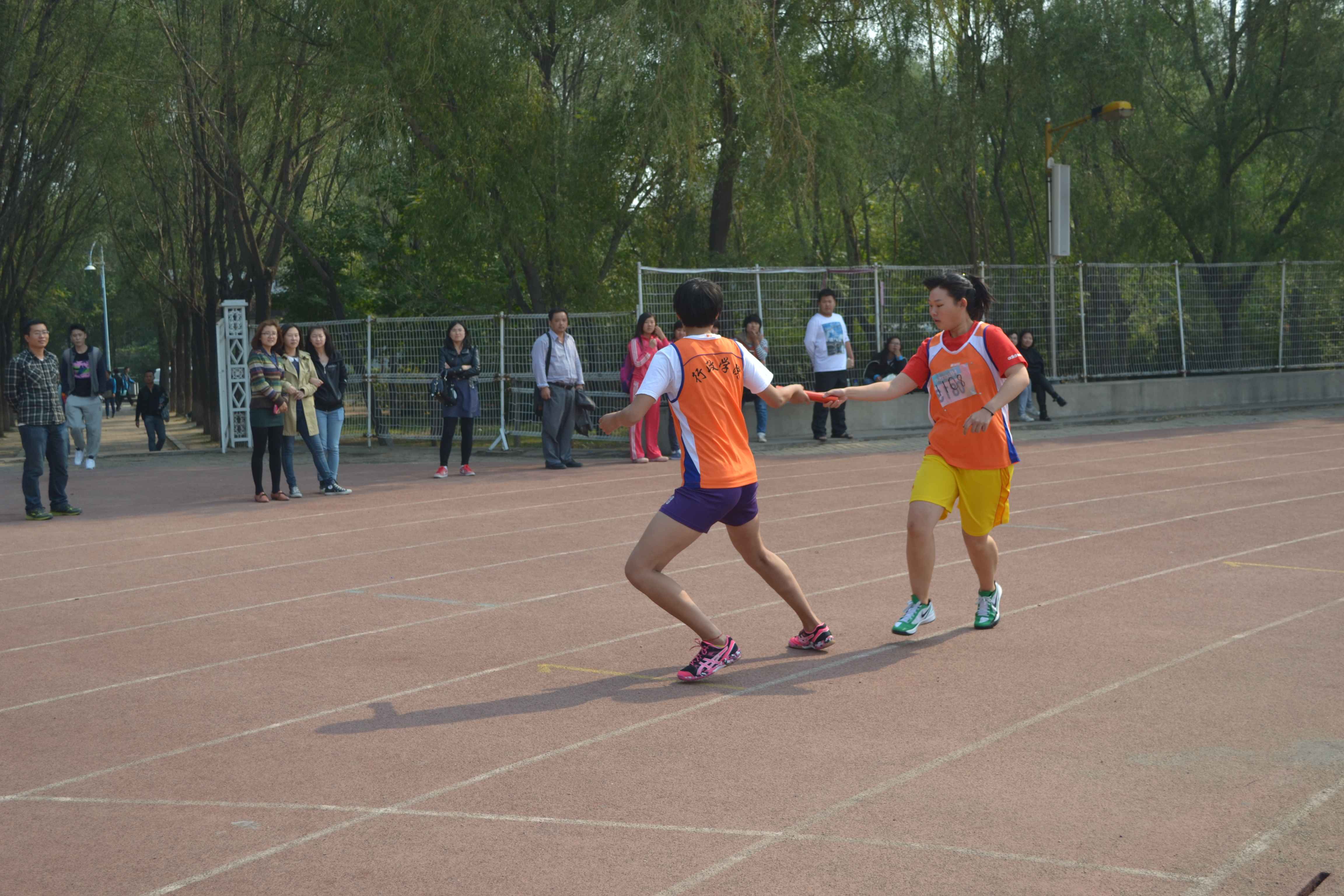 田径场上,行政健儿们奋力拼搏,再创佳绩。百米跑道上行政健儿挥汗飞驰,势如闪电;三千米赛场上行政学子咬紧牙关,永不言弃;而参加跳高,铅球的行政学子们则用他们充满活力的身影展现了大一新生昂扬向上的精神风貌;时代列车项目的运动员们则更是凭着默契的配合,熟练的动作,技压群雄,勇夺小组第一名,展现行政学子们一往无前的气概。行政学子不仅用高超的竞技水平和出色的赛场表现赢得了现场观众的一致好评;同时,他们在比赛中所展现出的“友谊第一、比赛第二”的竞技体育精神也令人钦佩不已。行政大一新生用汗水为学院争得了荣誉,通过他们的不断努力,以顽强的意志,再一次抒写了行政人昂扬向上的青春华章。在大一新生们为了学院的荣誉在赛场上挥洒汗水的同时,场下的学生会工作人员有条不紊地对整场比赛进行组织安排和细致的服务,积极为运动员创造良好的比赛、休息环境。