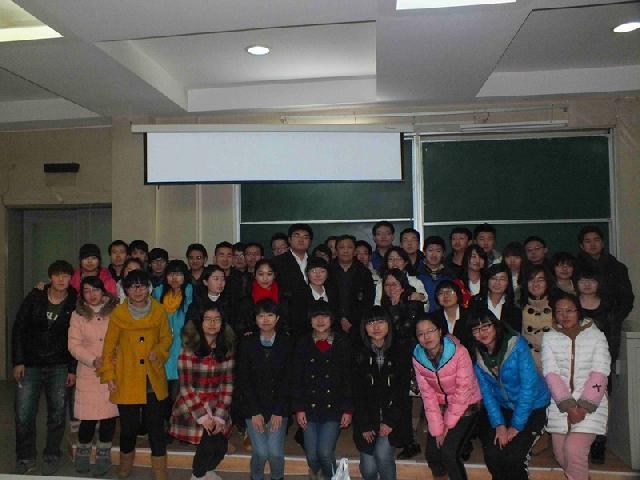 关于表彰2012年度“优秀学生干部”和“优秀学生个人”的决定》。刘洋、史慕华老师和佘彦老师先后为获奖同学颁发荣誉证书并合影留念。