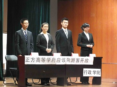 与金融学院的两支参赛队伍就“高等学府应不应该向游客开放”这一辩题展开了激烈交锋,正方成人导航