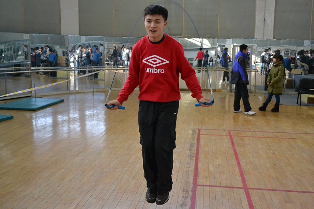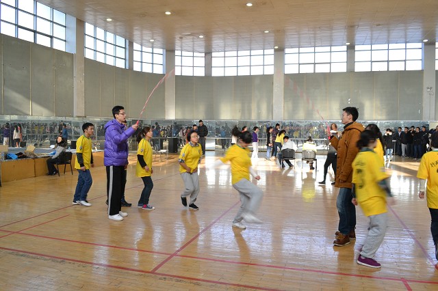 2011级学生丰朴鑫在男子组“30秒双摇”比赛环节中表现突出, 30秒内跳出了71个的好成绩,从众多的参赛选手中脱颖而出,最终勇夺冠军。接力赛中,成人导航