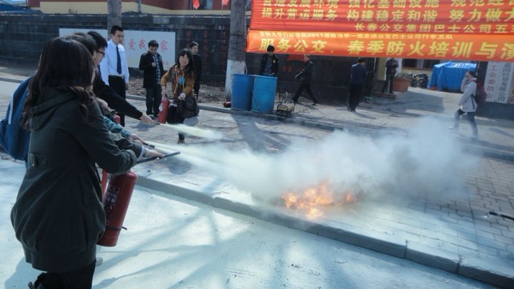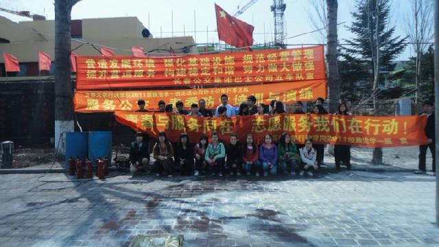 为了培养行政学子关爱他人、关心社会的责任感。我院11级政治学一班全体同学于4月14日上午来到长春公交巴士公司行车五队进行防火培训与演练,并在公交上进行防火知识宣传。