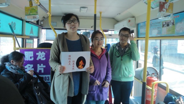 培训与演练完毕,一班同学分成四队分别登上公交车,向乘客普及防火知识和讲解火场逃生的技巧,车上乘客对他们热情细致的讲解表示了充分的肯定。活动最后一班班长对此次活动进行总结,他强调一定要将此项活动坚持下去,将我院“天下为公”的理念发扬光大。