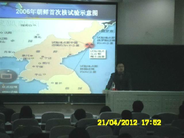 最后,郭锐老师还就“朝鲜卫星发射失败对朝核问题的新影响”、“朝核问题与台海、南海问题间的联系”等时政性问题与同学们深入交流,为同学们答疑解惑。郭锐老师全面详实的讲解,幽默风趣的谈吐赢得了同学们的阵阵掌声。