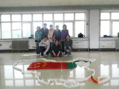 院徽为原型进行了骨牌设计,表达了队员们对学院的热爱;“愤怒的胶囊”队则把愤怒的小鸟和胶囊的外形相结合,表达出团队成员对近期的“毒胶囊”事件的愤慨;而“最炫小辣椒”队使用了中国地图和五星红旗的组合,表达出队员们热烈的爱国之情。其它各队伍也摆出了爱心兔子、扎根荒岛的大树等各具特色的造型。在接下来最受瞩目的骨牌推倒环节中,我院队伍精妙的骨牌设计再次给在场同学留下深刻的印象。