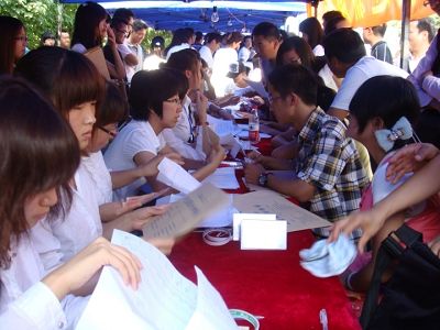 27日,全体工作人员早早来到各自岗位,由于报到人数较多,场面非常热烈。酷热的天气丝毫没有影响大家的工作积极性:师哥热情接送,帮助新生准备缺少的报到材料,带领同学们交费、体检,在五月花广场与大学城、校医院间往返,;师姐耐心讲解,指导新生填写各类登记表,热情接待家长,解答各类问题。此外,我院佘彦副书记、学工办主任史慕华老师、团委书记马景惠老师均来到迎新点看望大家,与全体工作人员一起迎接新生的到来。截至18:30,已有近100人进行报到。