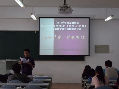 2010级政治学二班团支部在中心校区第三教学楼409室召开了以“服务社会、你我同行”为主题的新学期首次班会暨2010~2011学年度《形势与政策》课程实践教学部分成绩统计会议。出席本次会议的有学院志愿者工作部(简称志工部)部长以及成人导航