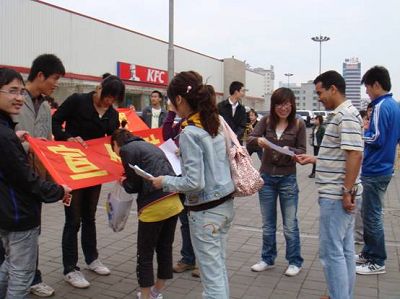 07级三班团支部的成员怀着无比激动的心情,带着当代大学生对祖国固有的情感,充满着对本次实践活动的好奇心,在当天的下午14时来到了沃尔玛门口。在本次活动中,支部成员分为了三组,分别负责持条幅、引导和采访。同学们面带笑容手持条幅,积极上前引导市民在条幅上签名,以专业视角来采访现场群众,每位同学都在自己负责的岗位上尽职尽责。